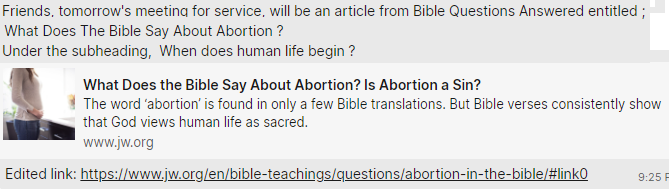 I like the latest jw online abortion article... Simple scriptures. No confusion